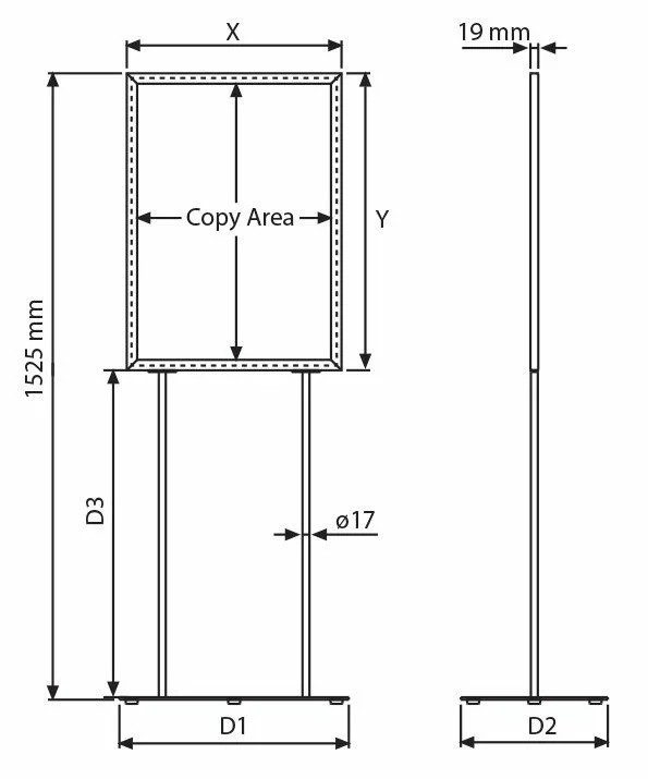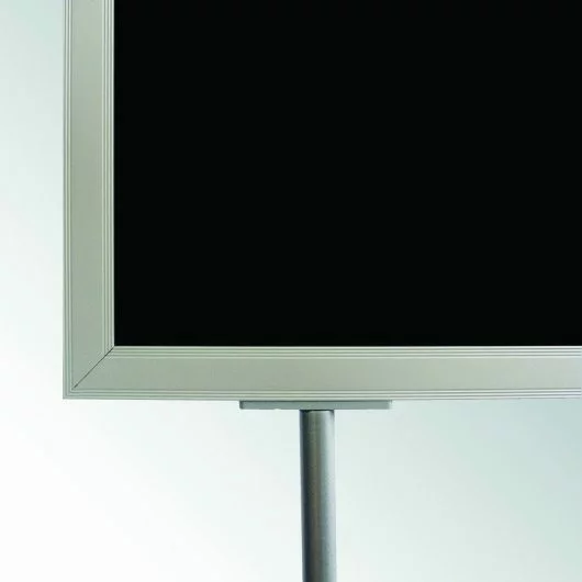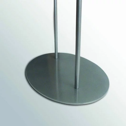 The Entrance Poster Display is a double-sided floor stand with a double-legged heavy-duty oval base. It is equipped with a black PVC sheet that separates both sides, while allowing any light to seep through from one side to the other.