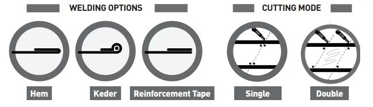 • Keder. Specific mode for keder reinforcement, where the material is not passing through the compensator inorder to avoid waves and deformities on the welding. - Different welding options – In the world of digital printing there are different ways of finishing banners. With All In One you can finish your banners using keder, tape reinforcement or hem welding
