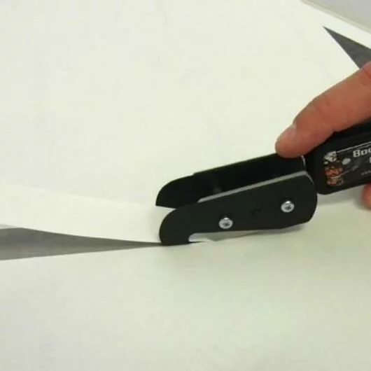 Cutting medias in half can be a challenging and dangerous task for signmakers, as it may damage the graphic or the sign or vehicle surface. The BodyGuardKnife Twin Teflon is the perfect double-blade knife for strip cuts, providing excellent gliding properties thanks to its Teflon gliding feet, which protect the film and substrate from damage. This allows for a clean and safe centre stripe cut to be easily achieved in one go.