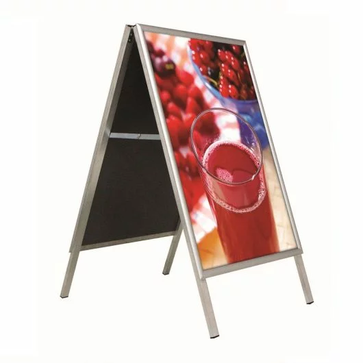 The Elite Indoor Snap A-Frame is a premium A-board designed for indoor applications. Available in sleek black and silver, and A1 and A2 sizes, this snap A-frame offers versatility for various display needs. It is made with a full aluminium body and PS poster backing, ensuring durability and stability. The 25 mm aluminium profile thickness allows it to hold posters up to 2 mm on each side, providing a double-sided display solution. Ideal for promoting events, sales, or informational signage.